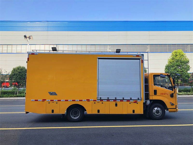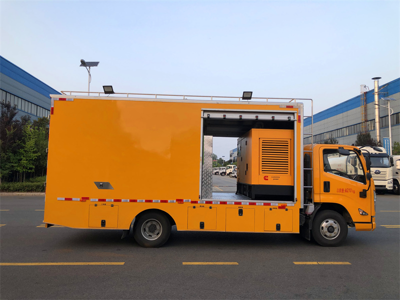上裝配置:定制復合箱體,帶降噪功能,不銹鋼內(nèi)飾,75WK柴油發(fā)動機,雙風機組合,定制控制系統(tǒng),160米繞線機,紫外光大小燈鏈各一組,箱體帶冷暖空調(diào),氣動遮陽板,不銹鋼儲物柜,兩側(cè)帶工具箱,更多配置